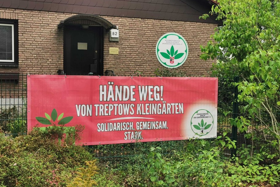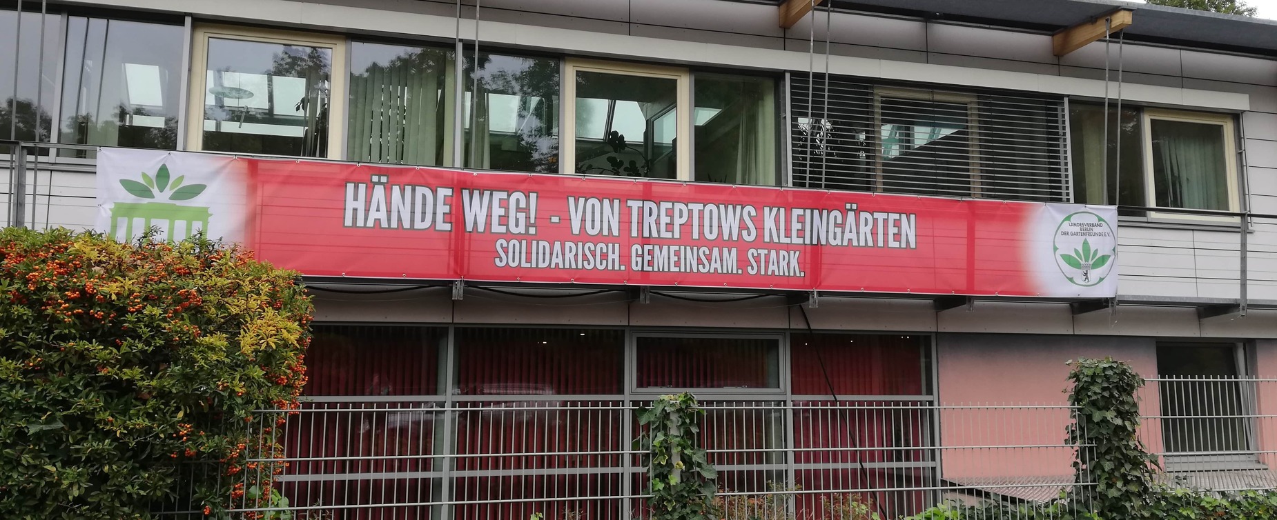 Der Landesverband dankt im Namen der betroffenen Gartenfreunde in Treptow-Späthsfelde allen Banner-Akteuren für die öffentlich gezeigte Solidarität ihres Vereins: Tausend Dank in die Bezirke! Leserinnen und Leser seien sich gewiss: es hängen mehr rote Banner in Berlin, als wir hier zeigen können.